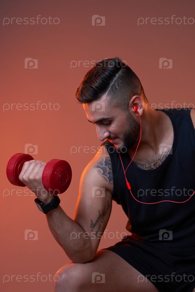 Человек, занимающийся гантельками