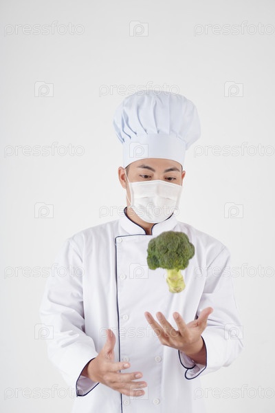 Повар, бросающий брокколи