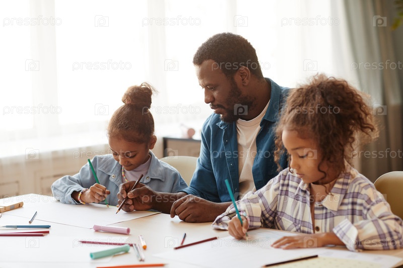 Афроамериканский отец с двумя дочерьми