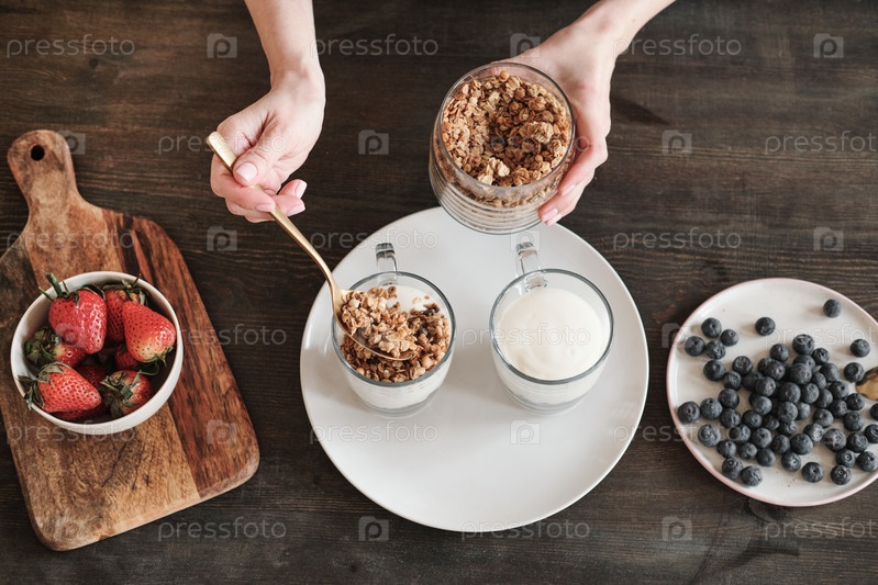 Добавление мюсли в йогурт