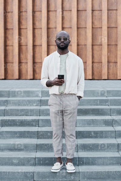 Красивый черный мужчина с гаджетом