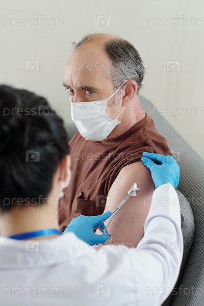 Испуганный мужчина получает прививку