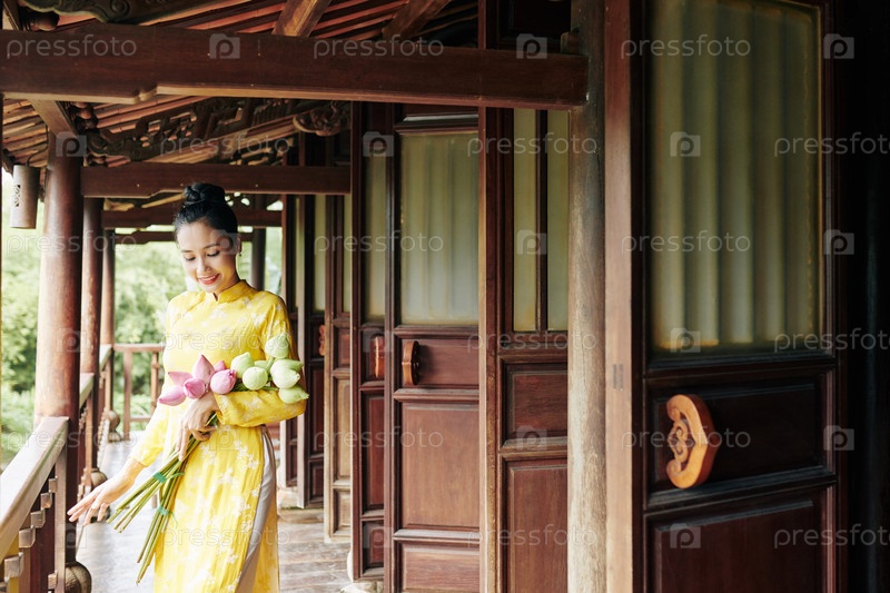 Красивая женщина с цветами лотоса