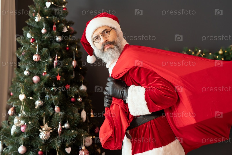 Портрет плохого Санты с тяжелым мешком