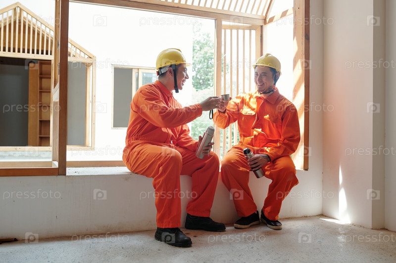 Строители пьют горячий кофе