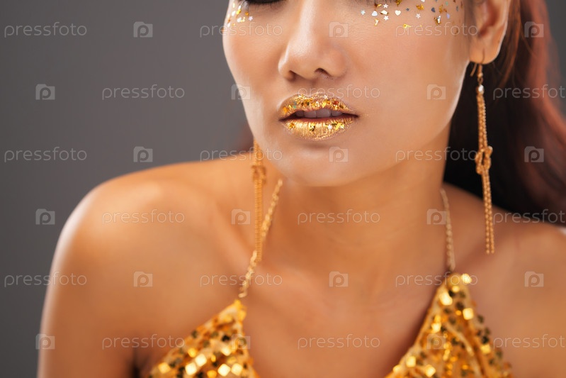 Макияж золотых губ