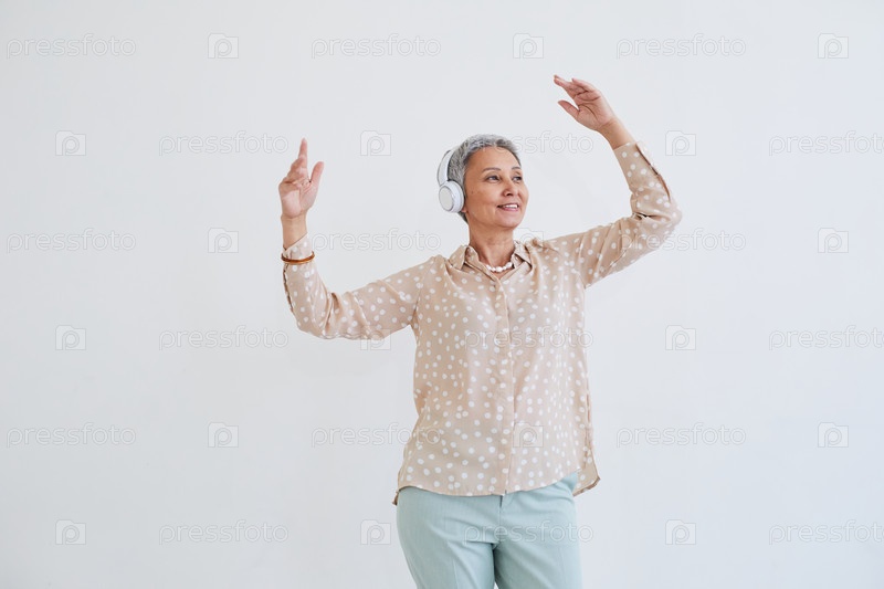 Пожилая женщина, слушающая музыку и танцы