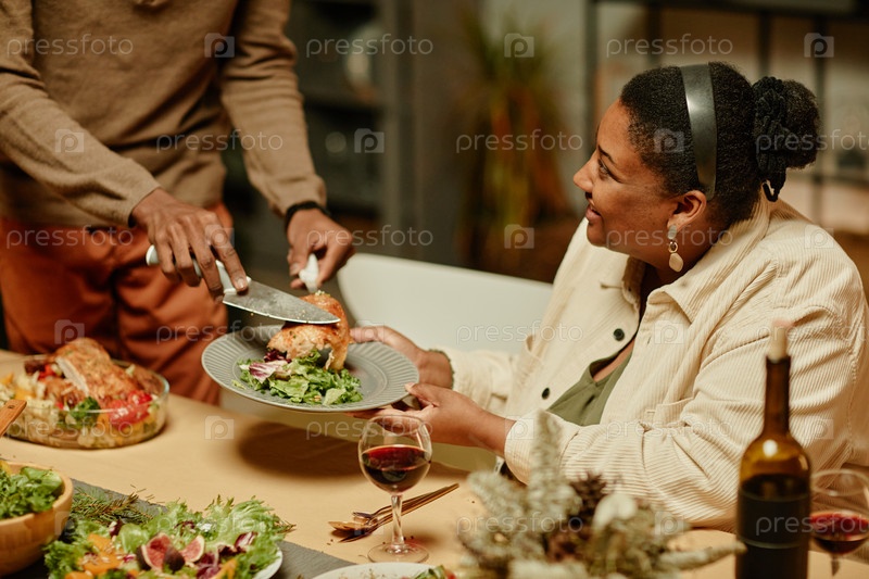 Семья, подающая курицу на ужин