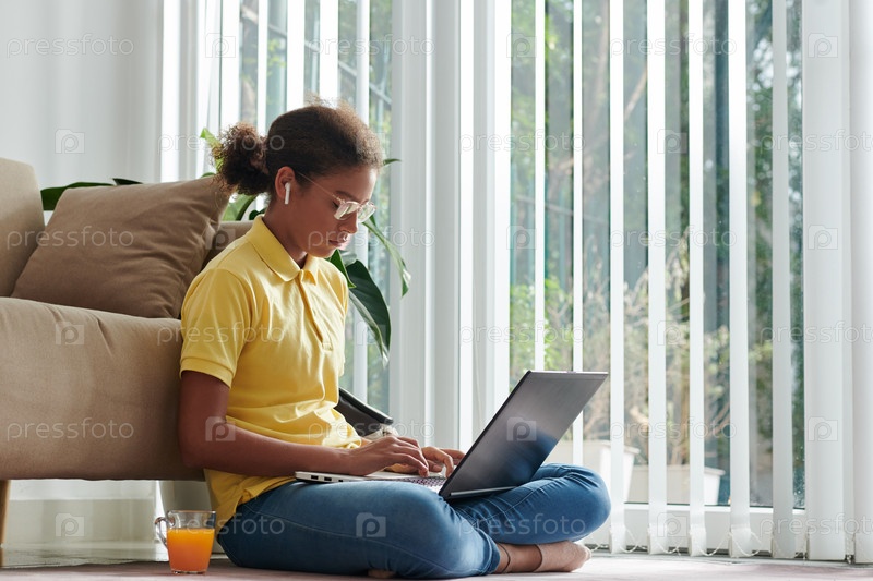 Умная девушка, работающая на ноутбуке
