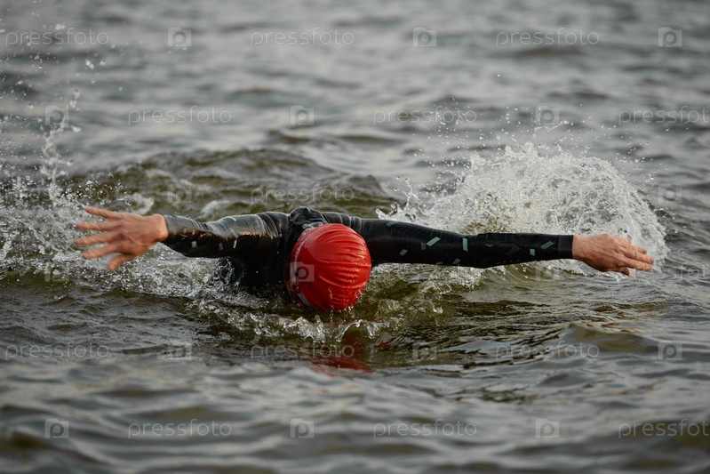 Решительная женщина плавает в море