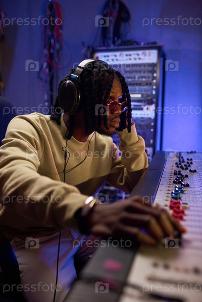 Музыкант создает новые песни в студии