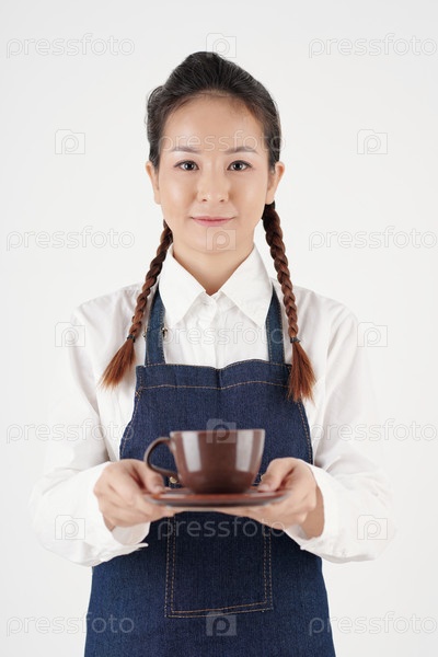 Официантка, подающая чашку кофе