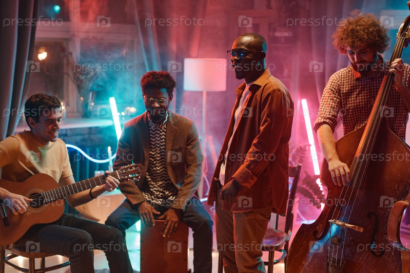 Музыкальная группа репетирует в студии