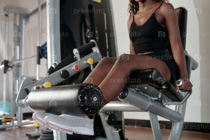 Женщина, выполняющая упражнения на машине для удлинения ног