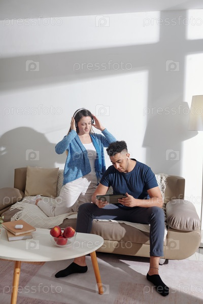 Молодая пара, слушающая музыку