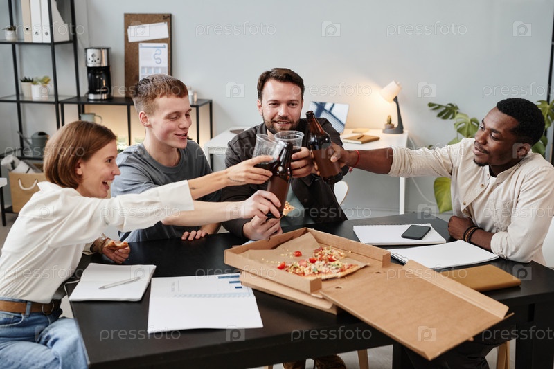 Бизнесмены празднуют с пивом после работы