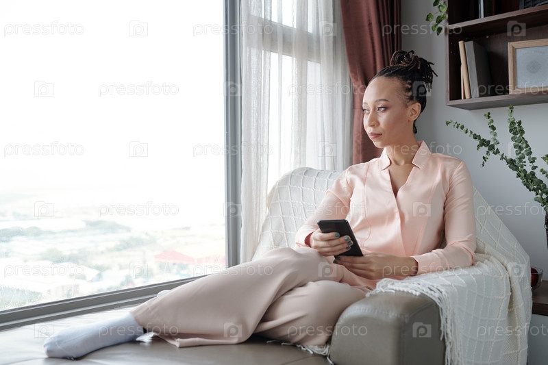 Женщина, отдыхающая со смартфоном в руках