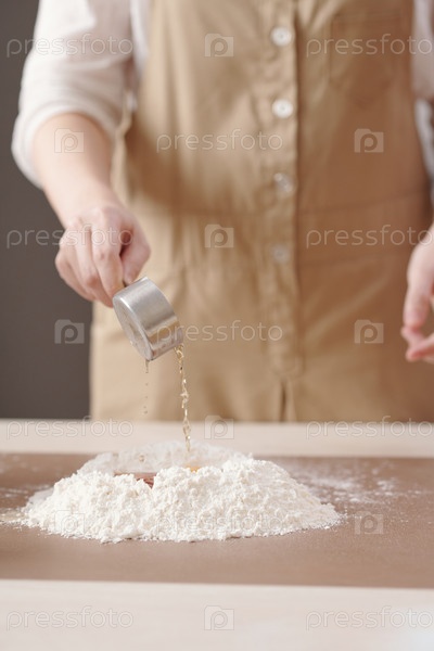 Человек, добавляющий лиевую воду к муке