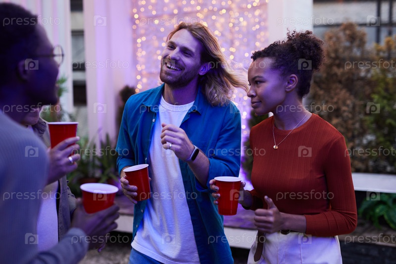 Молодые люди празднуют на террасе