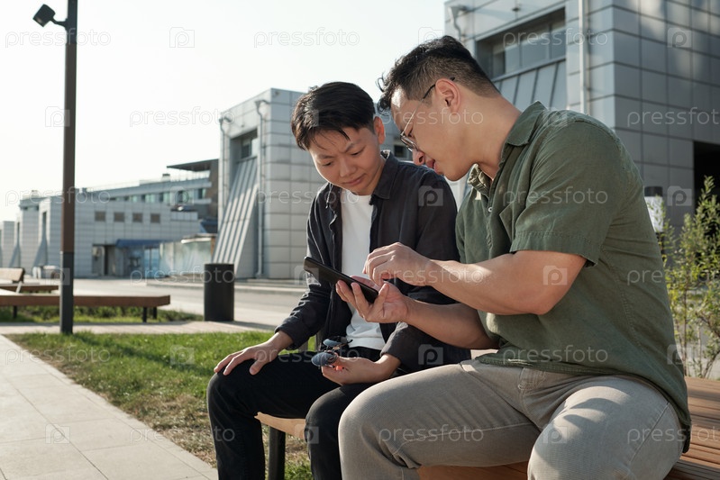 Два молодых китайских сотрудника смотрят онлайн видео