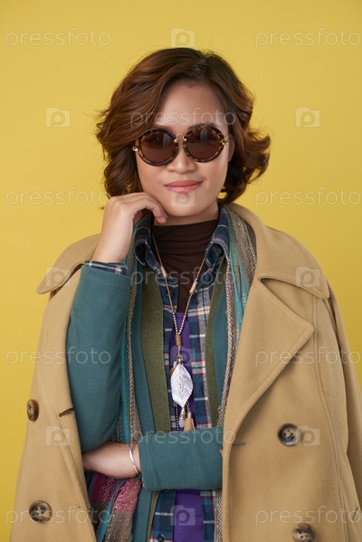 Позитивная женщина в стильной одежде
