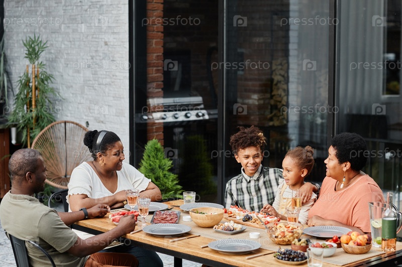 Семейная трапеза на открытом воздухе Счастливый