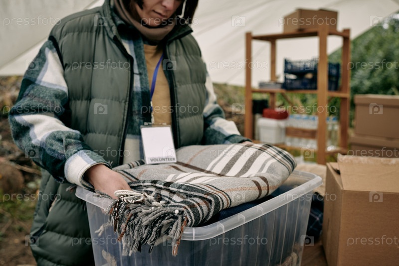 Доброволец готовит теплые одеяла для беженцев