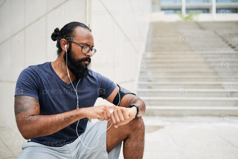 Чекинг фитнес смотреть мужчина на открытом воздухе