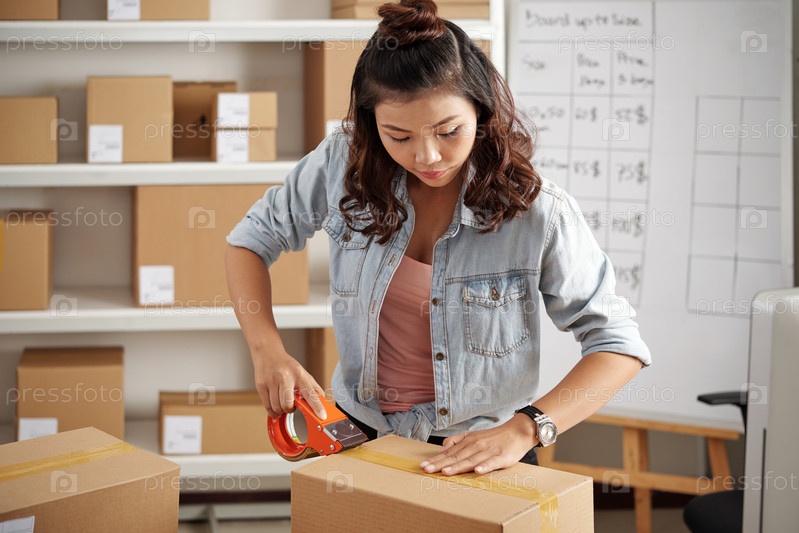 Почтовый работник использует проводную ленту