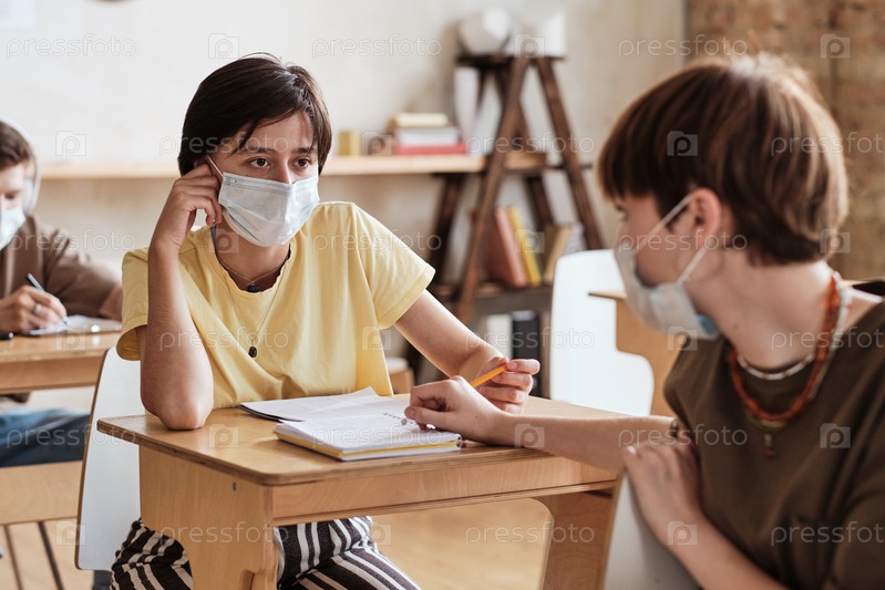Студенты, сидящие во время урока в школе