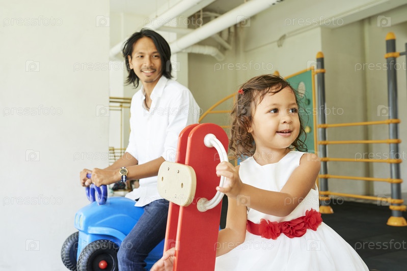 Отец и дочь на детской площадке