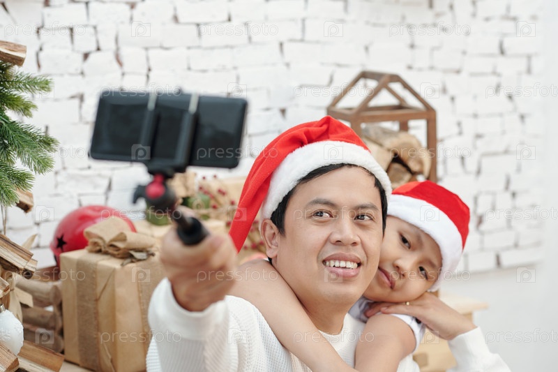 Отец и сын снимают рождественский влог