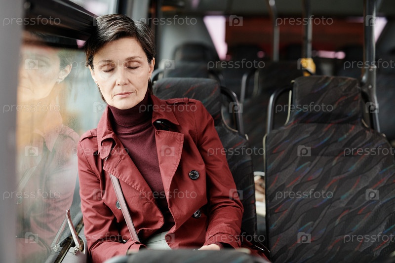 Женщина спит в автобусе