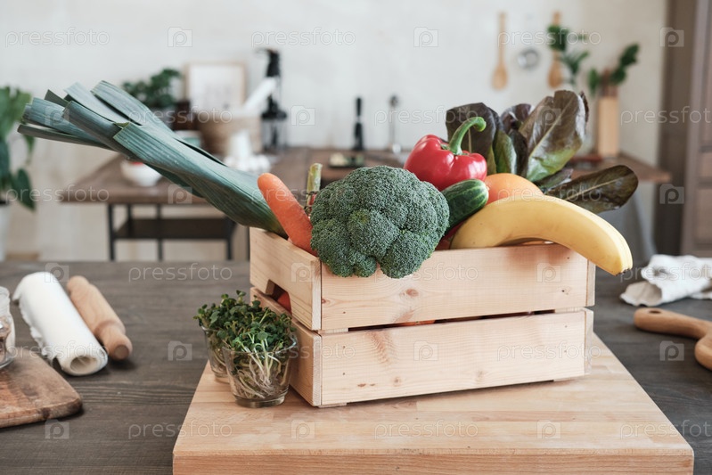 Коробка с овощами и фруктами