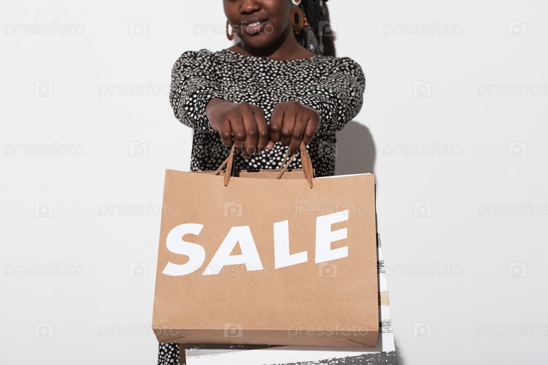 Женщина покупает одежду на распродаже