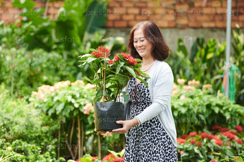 Счастливая женщина с цветущим цветком