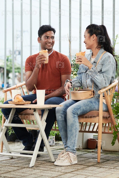 Пара, наслаждающаяся уличной едой