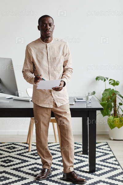 Американский мужчина в офисе минимальный афроамериканец