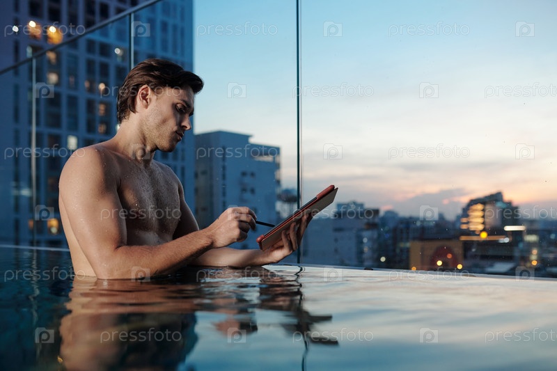 Человек в бассейне подписывает документ