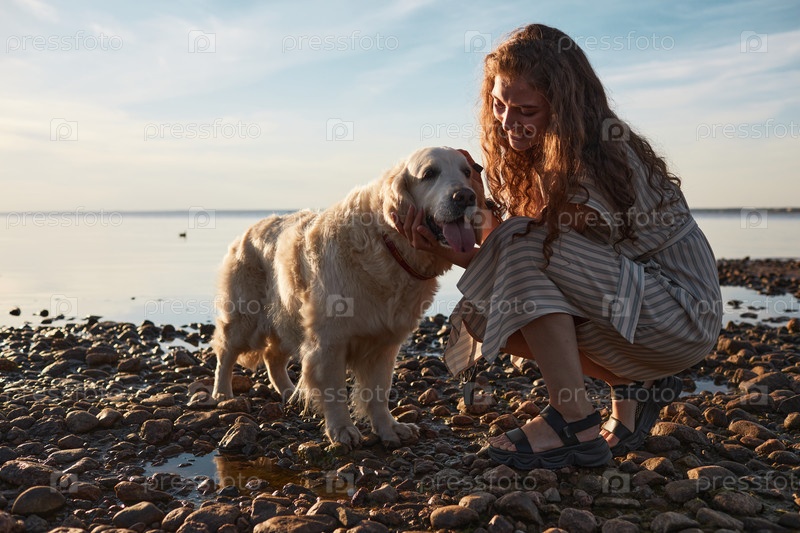 Женщина с собакой у озера
