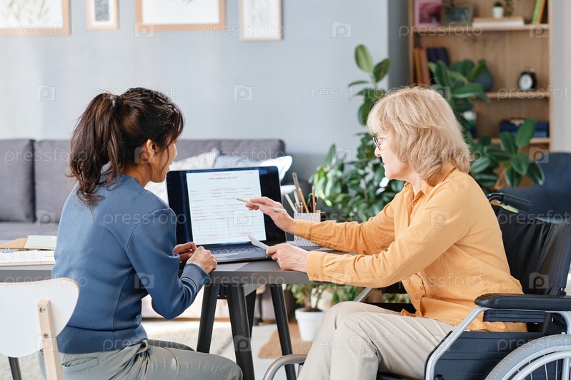 Пожилая женщина изучает новый бизнес с помощником