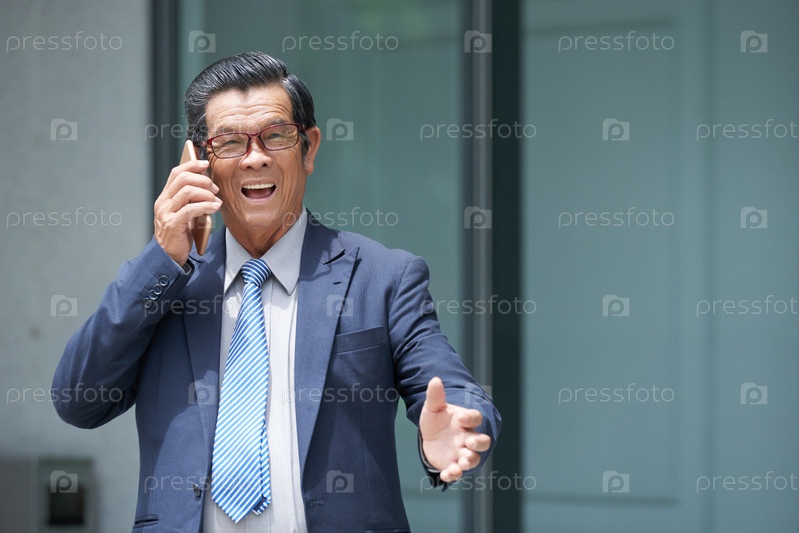 Взволнованный бизнесмен разговаривает по телефону