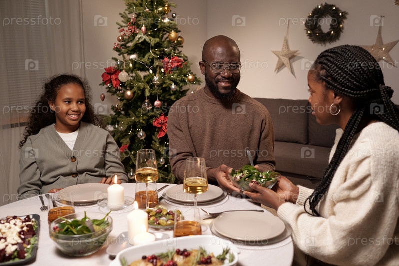 Молодая африканская женщина передает своему мужу миску со салатами