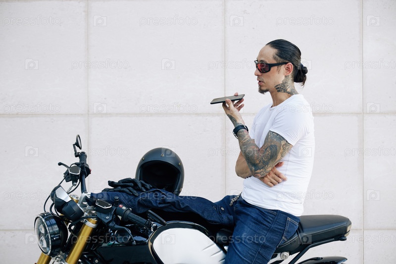 Мотоциклист записывает голосовое сообщение