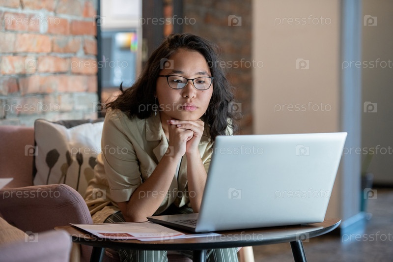 Молодая бизнесвуменка смотрит онлайн видео или общается с кем-то