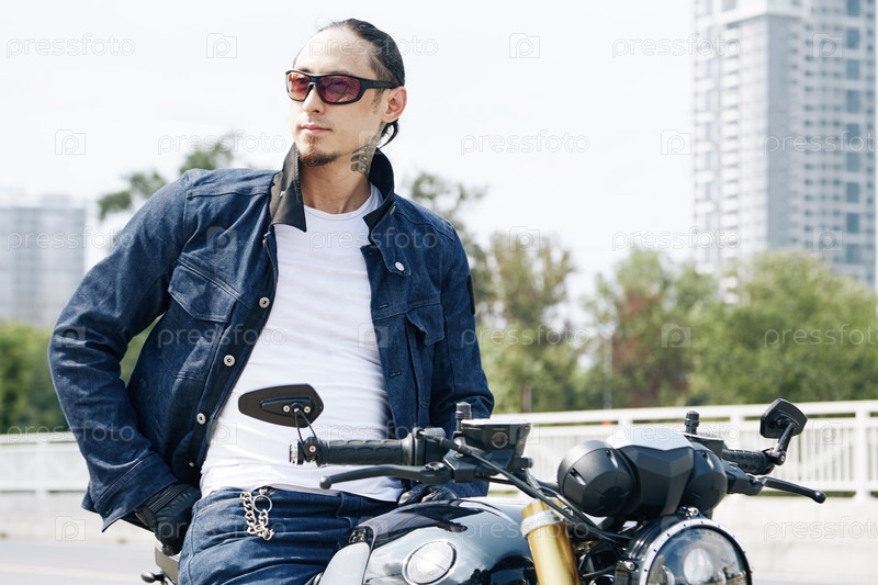 Уверенный мужчина на мотоцикле