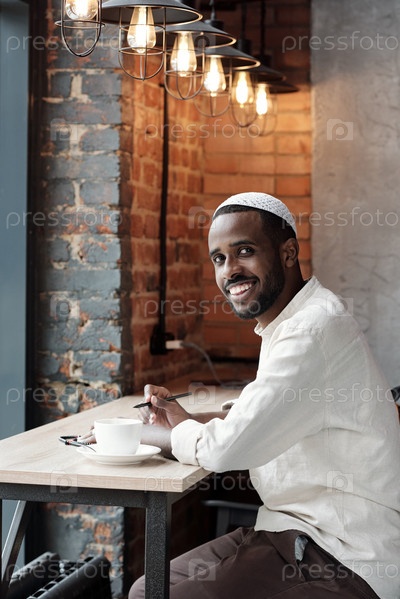 Портрет красивого парня в мусульманской шляпе
