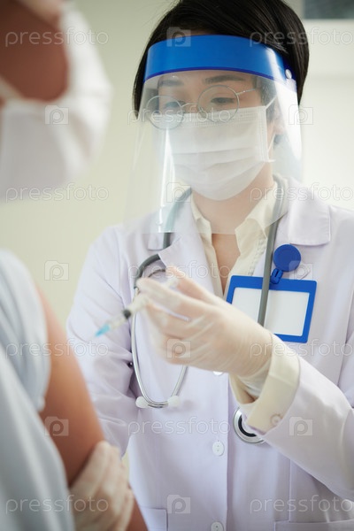 Женщина-врач, вводящая вакцину