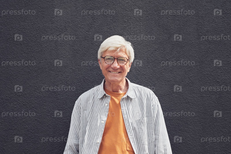 Портрет современного зрелого мужчины на сером