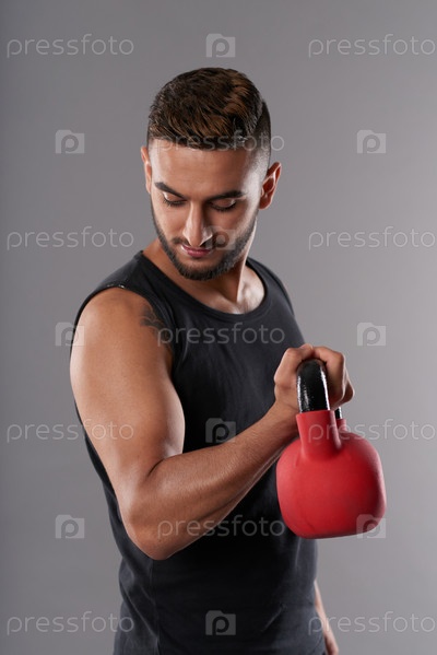 Спортсмен, который смотрит на свои бицепсы